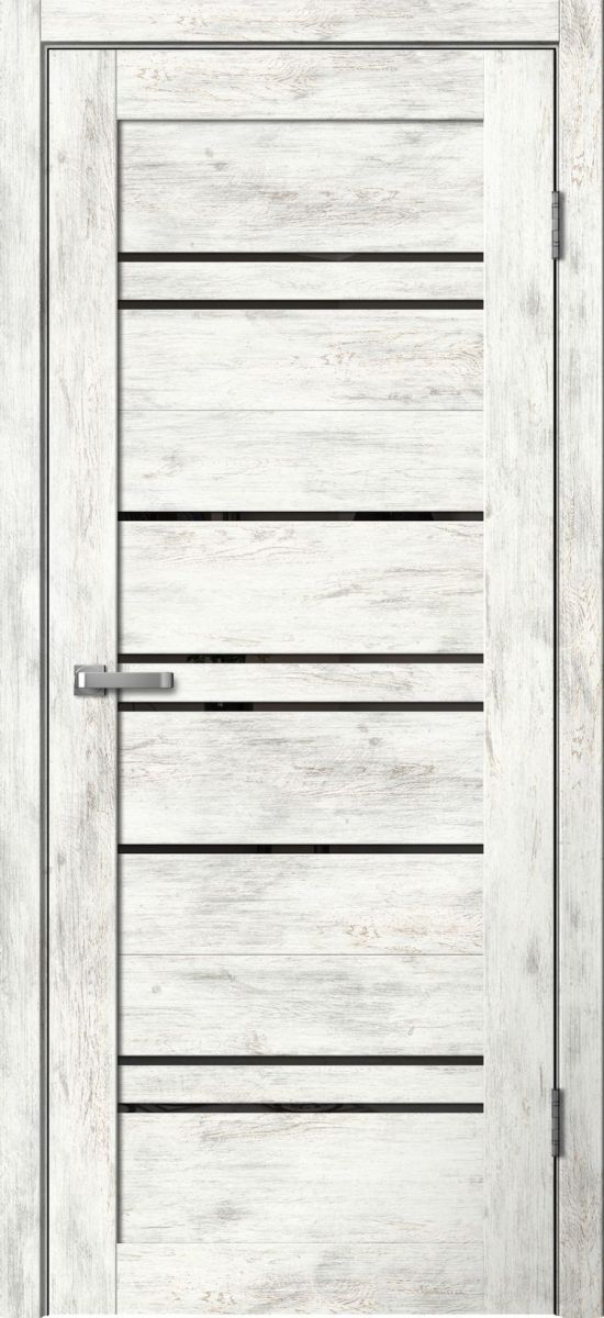 Межкомнатная дверь BARN B02 ПВХ Ель альпийская, стекло Lacobel черное