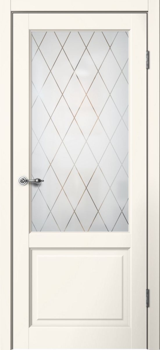 Межкомнатная дверь CLASSIC C02 Эмалит ваниль, матовое стекло Английская решетка