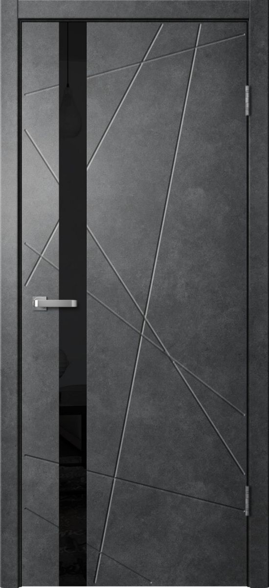Межкомнатная дверь LINE02 ПВХ Бетон темный, стекло Lacobel черное