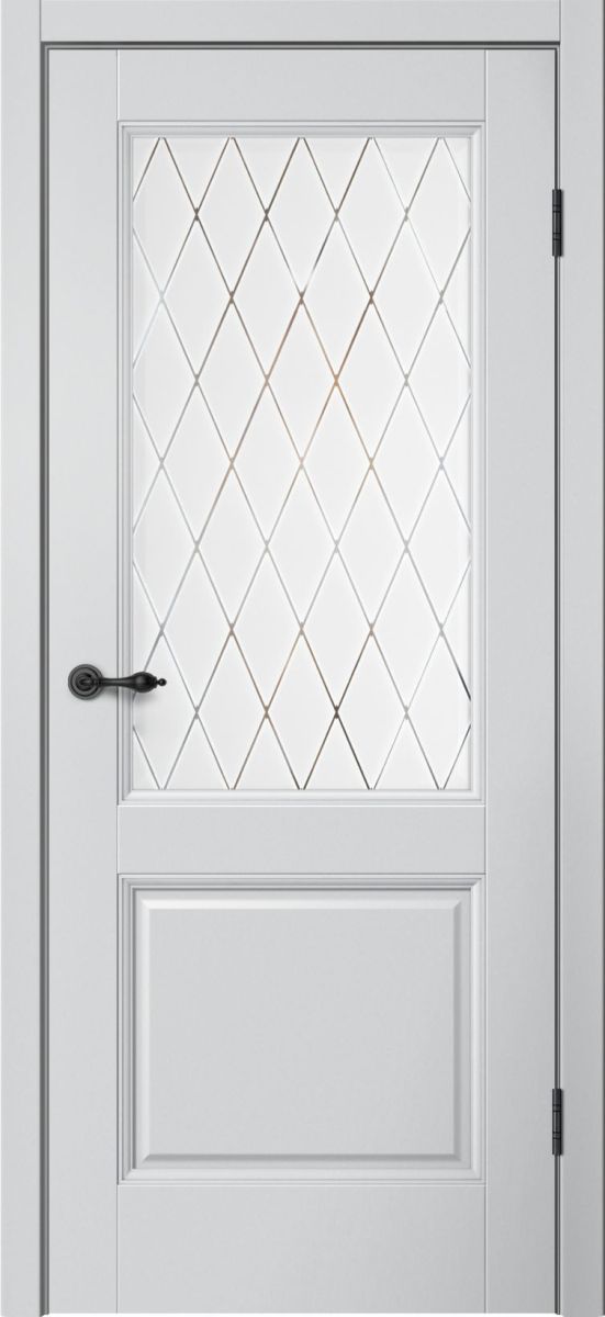 Межкомнатная дверь MONE M93 Эмалит серебристый, матовое стекло Английская решетка