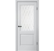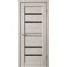 Межкомнатная дверь STATUS ST02 ПВХ Cappuccino soft, стекло Lacobel черное