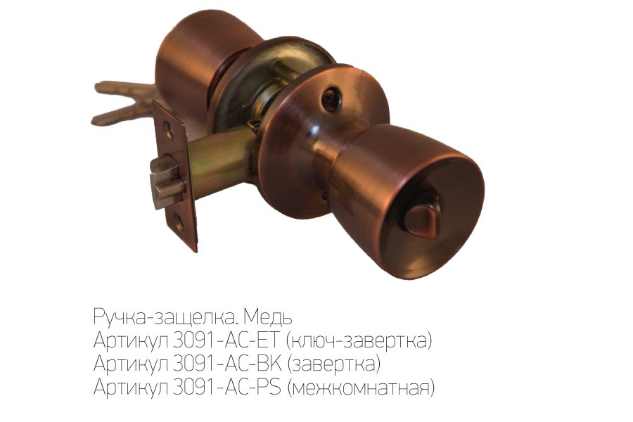 Ручка с защелкой-кноб ARSENAL 3091 AC BK Медь, завертка