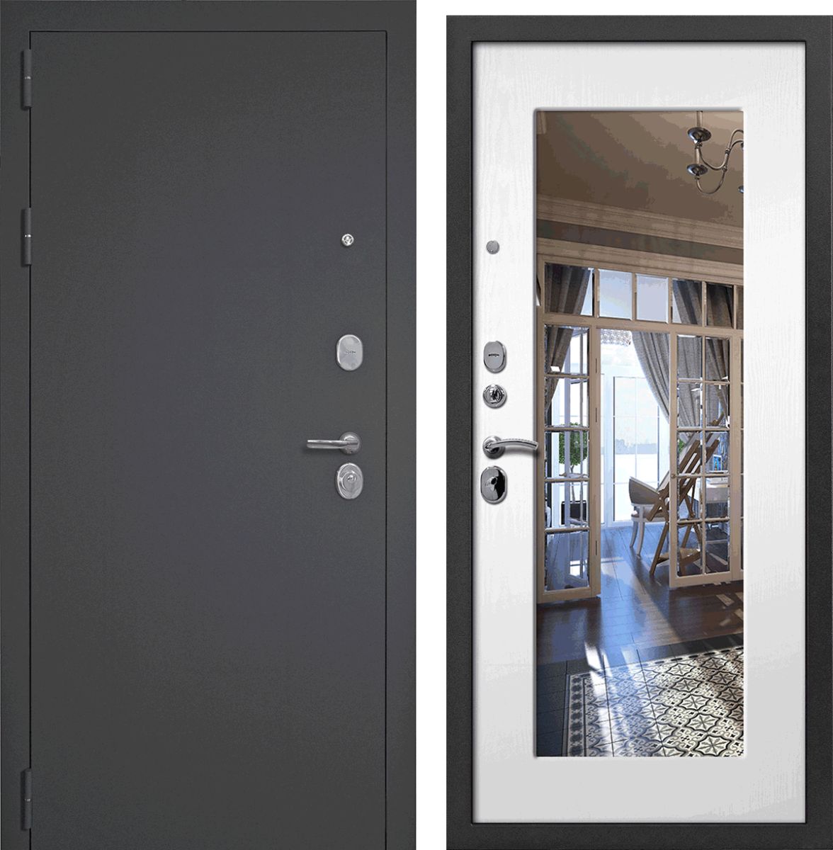 Особенностью двери 3К МОДЕРН является зеркальная вставка на внутренней МДФ панели.