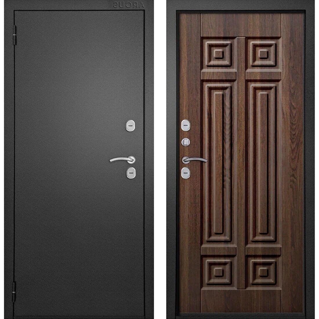 Установленные в двери два сувальдных замка – "Аргус" обеспечивают надёжную защиту помещения.