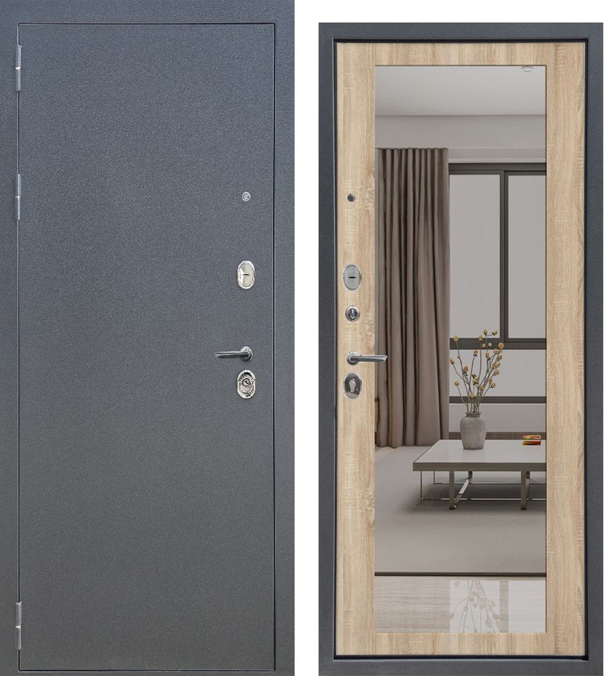 Входная металлическая дверь FlyDoors АРКАН ЗЕРКАЛО Букле графит - Дуб сонома светлый, произведённая на заводе входных дверей в г. Йошкар-Ола изготовлена из высокопрочной стали и обладает элегантным дизайном.
