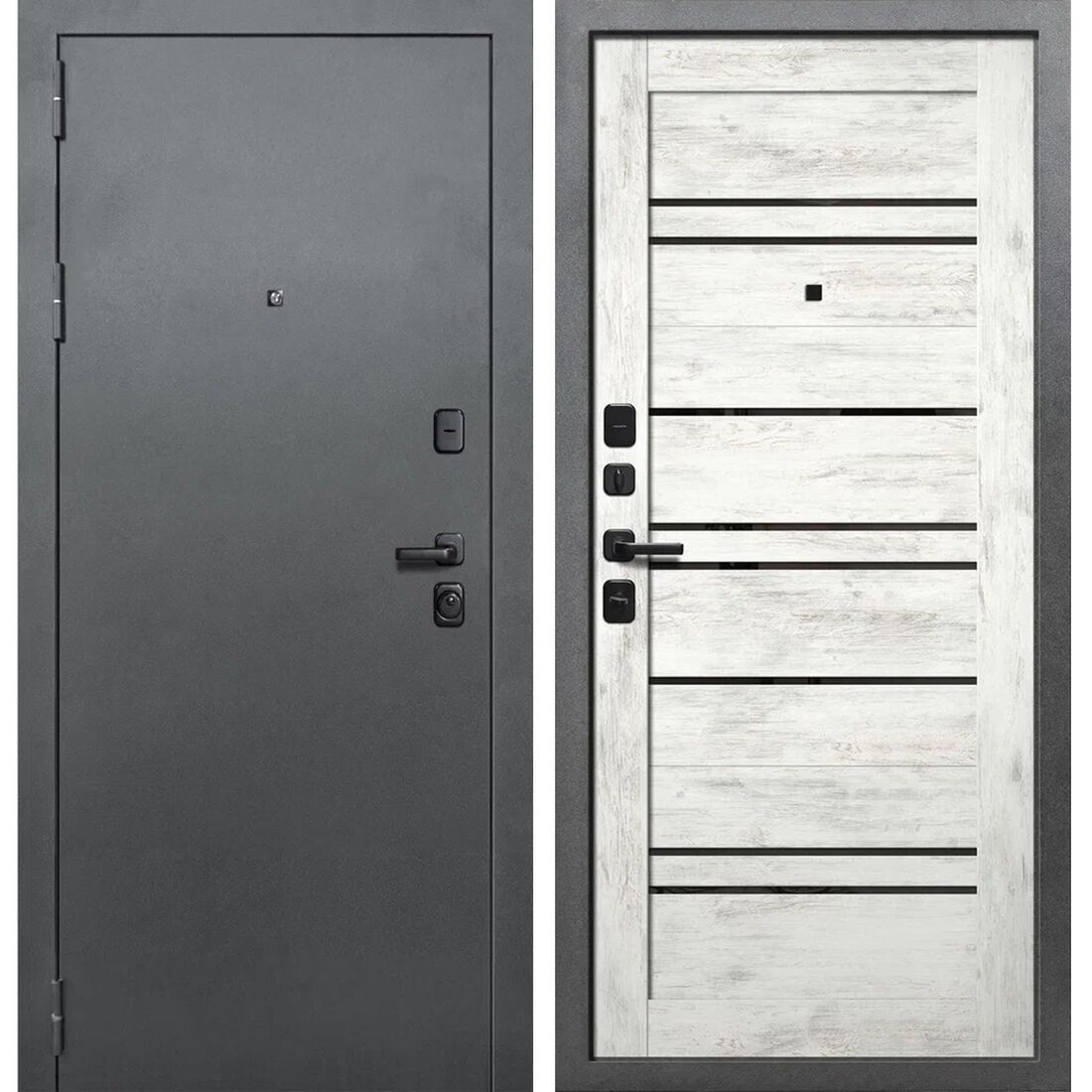 Входная дверь ДУЭТ Barn (Букле темный/ Ель альпийская)