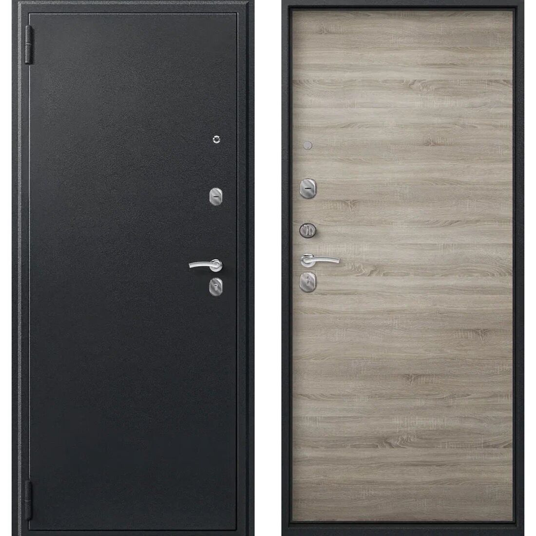 Входная дверь О-11 (Сатин черный/ Дуб светлый)