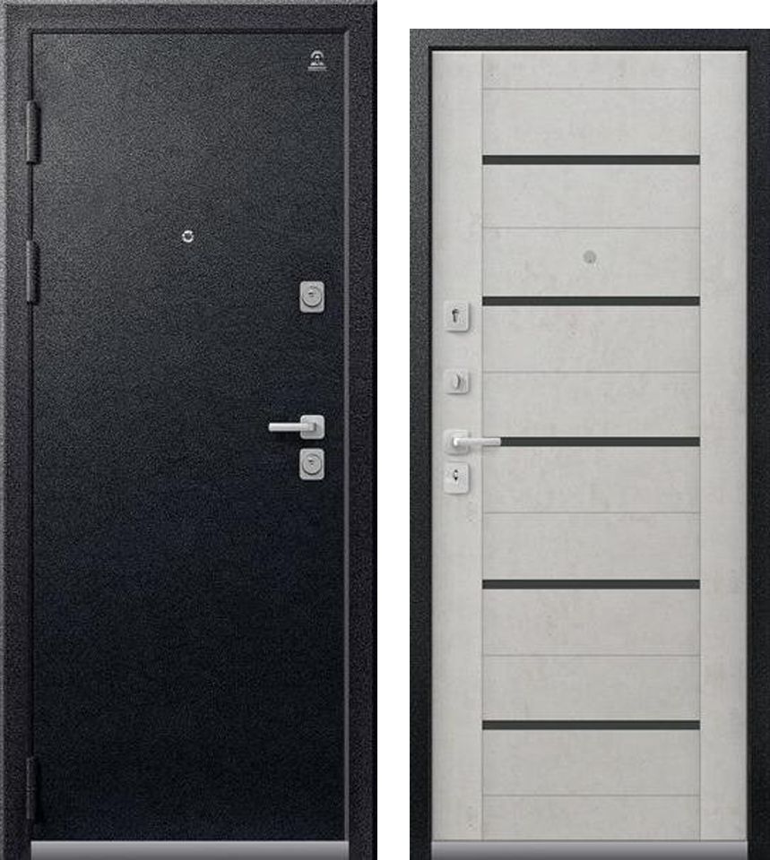 Входная дверь С-107 (Черный муар/ Бетон светлый)