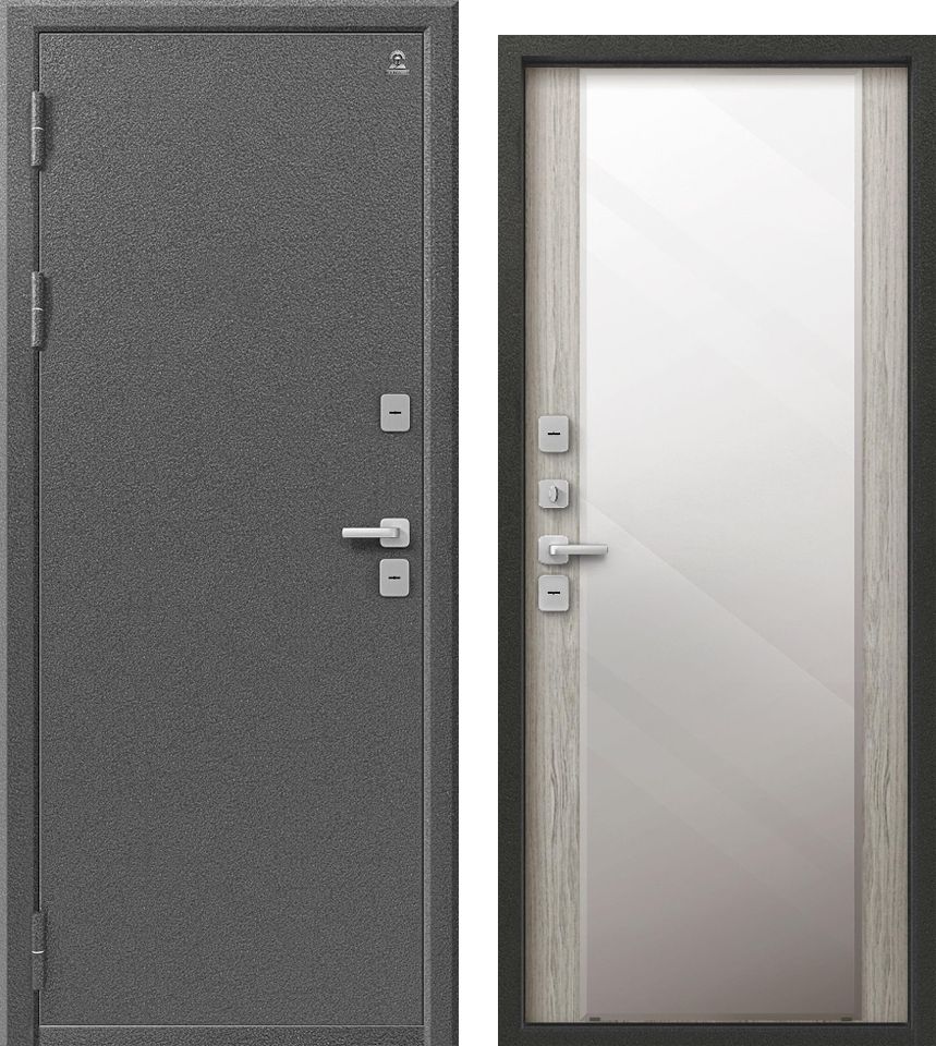 Входная металлическая дверь с зеркальной вставкой на внутренней МДФ панели Центурион Т-6/1, произведённая на заводе "Центурион" в г. Новосибирске, это дверь серии "ТЕРМО" с ЧЕТЫРЁХКАМЕРНЫМ ТЕРМОРАЗРЫВОМ на полотне и коробе.