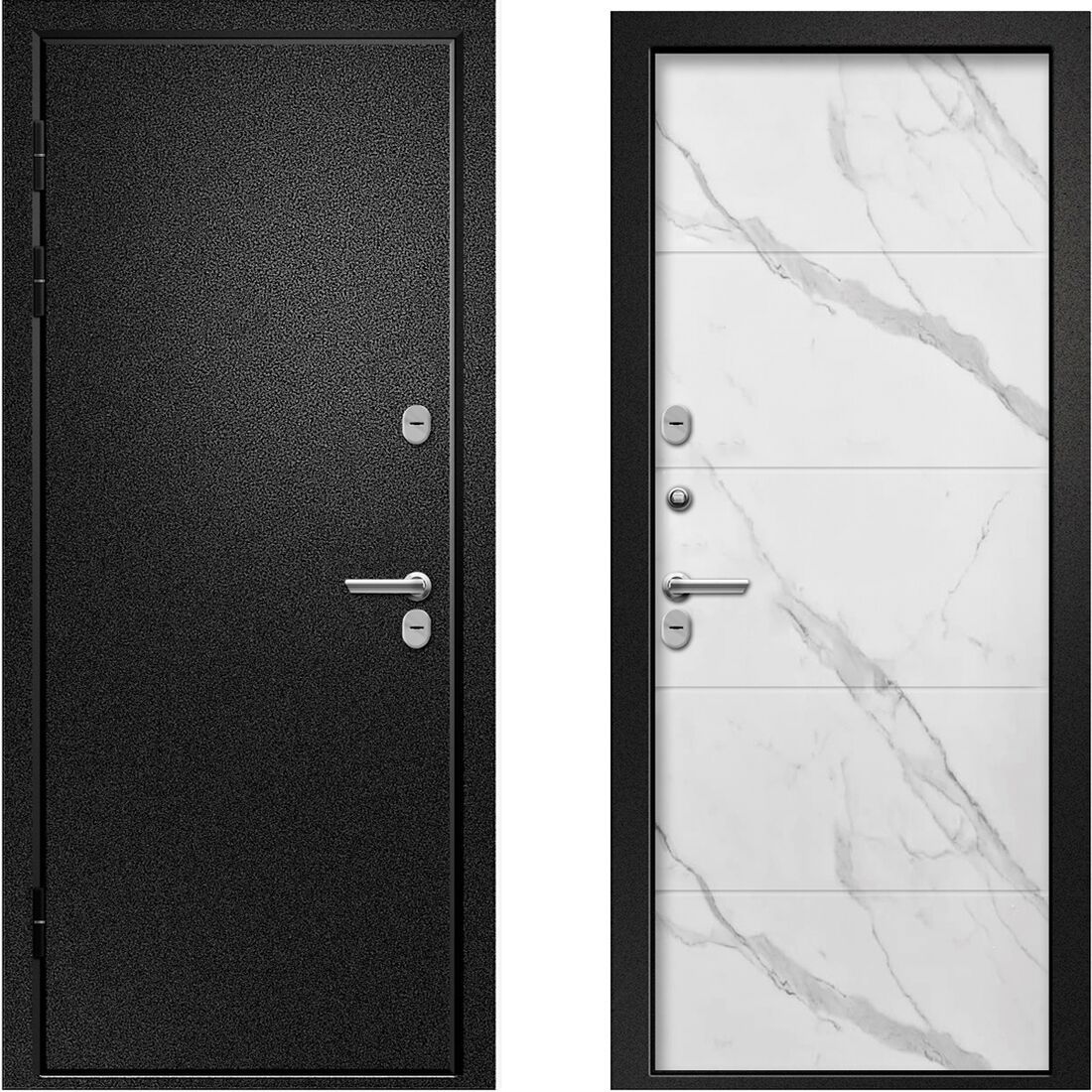 Входная дверь ВЕСТА Термо (Букле черный/ Мрамор светлый)